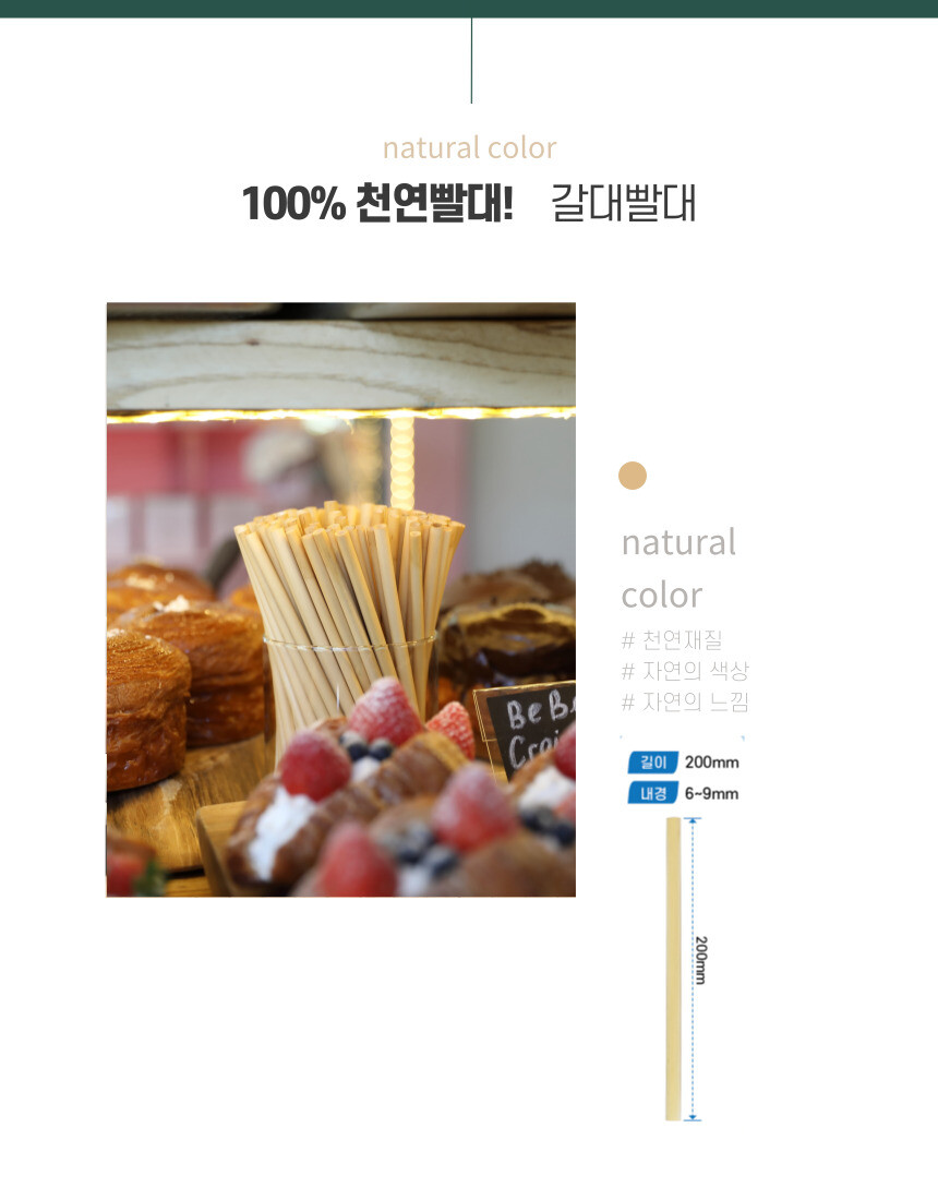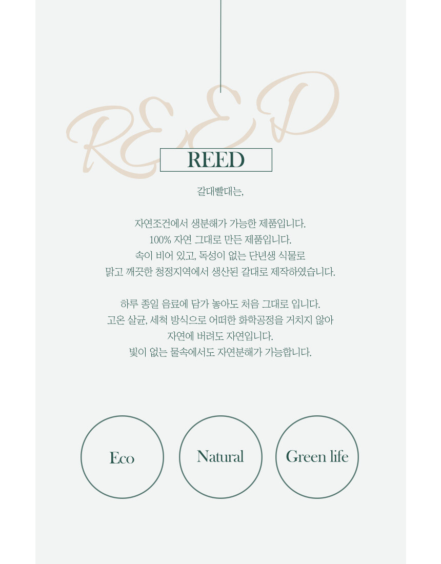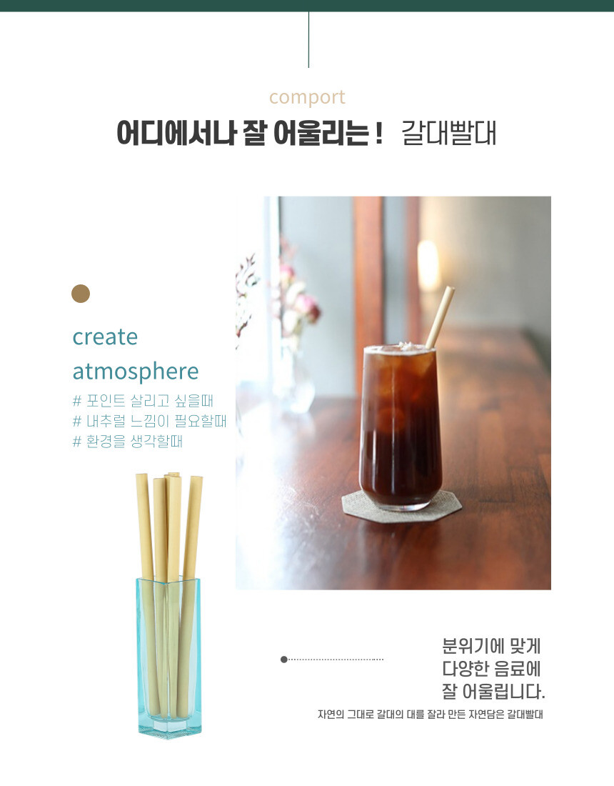 자연의 그대로 갈대의 대를 잘라 만든 자연 담은 빨대로 버리는 순간 자연으로 되돌릴수 있는 제품입니다.