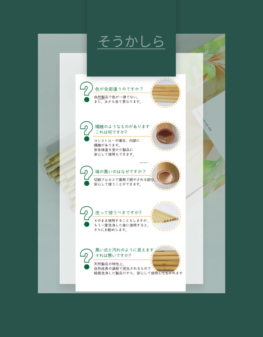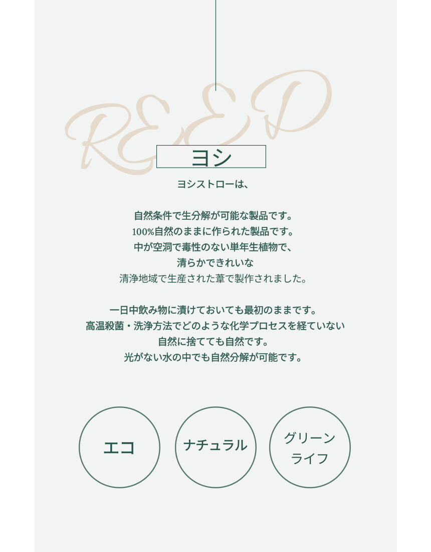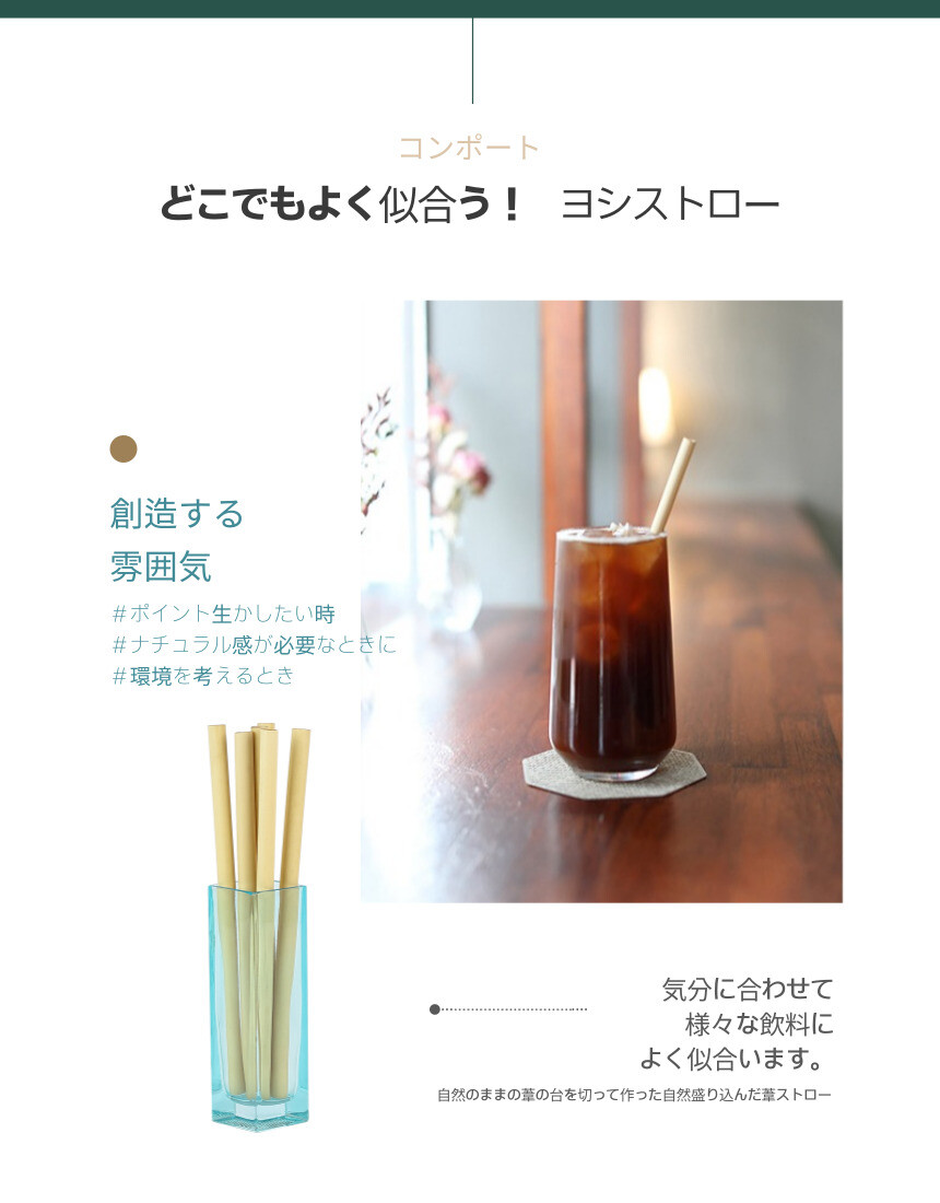 자연의 그대로 갈대의 대를 잘라 만든 자연 담은 빨대로 버리는 순간 자연으로 되돌릴수 있는 제품입니다.